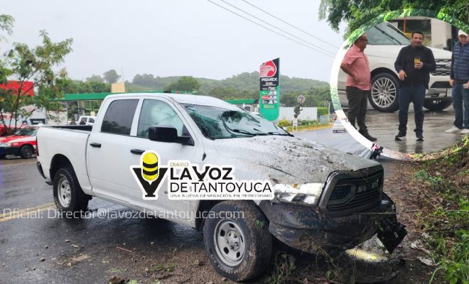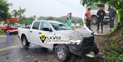 Muere hombre tras caer camioneta a un voladero, en Tlanchinol