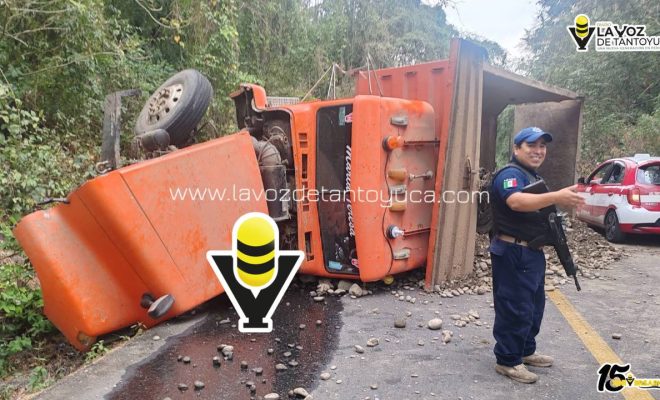 Pánuco, Veracruz | 19 de Marzo del 2026 | Grupo GHOAM urante la madrugada de este día, un camión cargado con caña volcó a la altura de la zona del dren, en ...