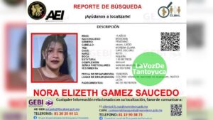 De acuerdo con la ficha, la menor de 15 años de edad, originaria de la localidad de San Sebastián, municipio de Tantoyuca, Veracruz, desapareció en Guadalupe, Nuevo León.