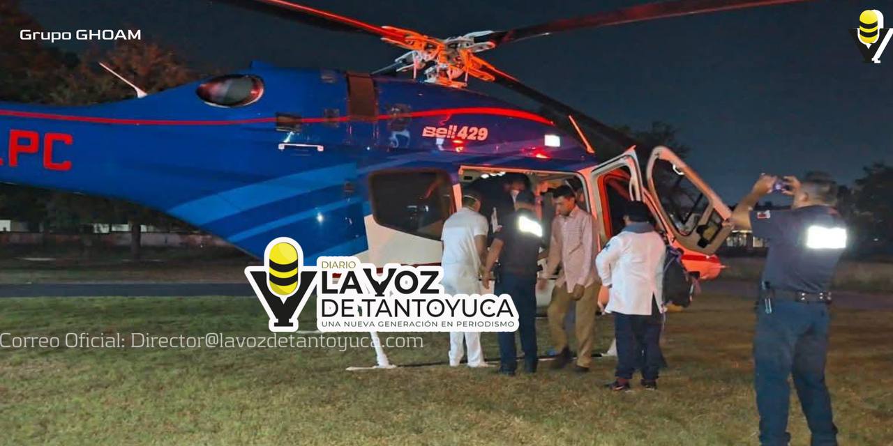 El traslado se efectuó a bordo de un helicóptero del Gobierno de Hidalgo, como parte del apoyo brindado a la población que requiere atención médica inmediata en casos de emergencia.