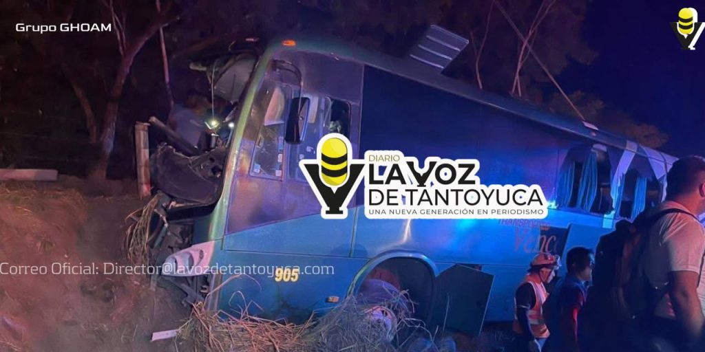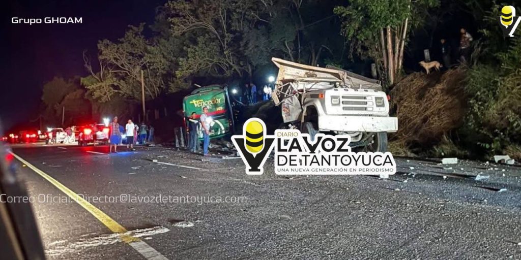 El conductor de un camión materialista realizó una maniobra prohibida sobre la carretera federal Valles – Tamazunchale, lo que provocó un choque contra un autobús de la línea Transportes Vencedor. Como resultado, una mujer perdió la vida y hubo siete personas lesionadas.