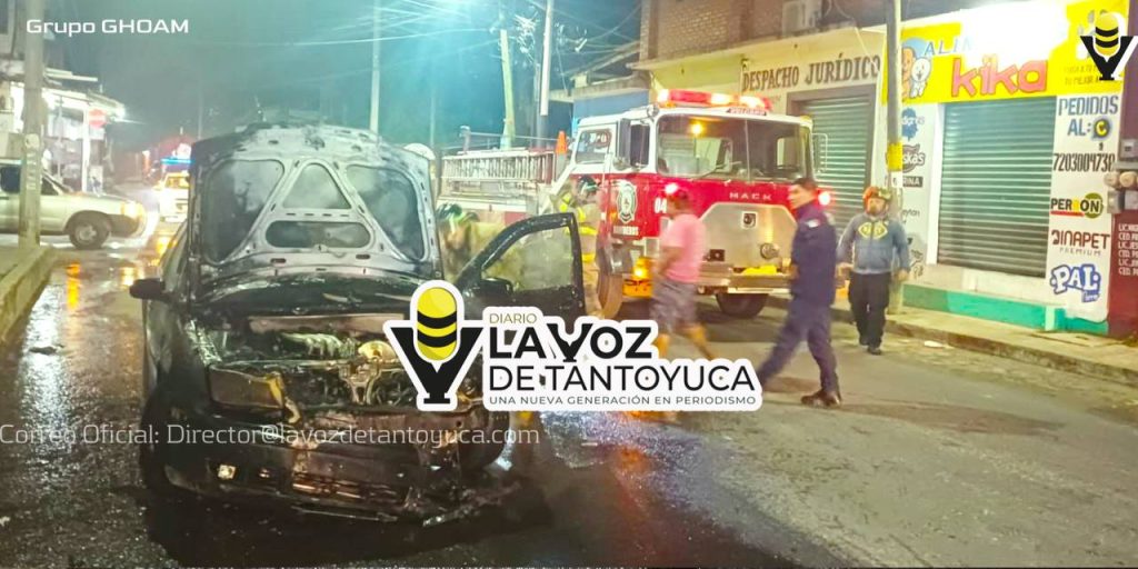 En cuestión de minutos, los bomberos de Huejutla arribaron al sitio y lograron controlar el fuego, evitando que las llamas se extendieran a viviendas o vehículos cercanos.