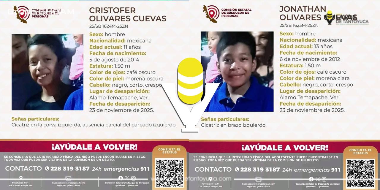 La desaparición de dos niños en la comunidad Jardín Nuevo ha generado preocupación entre vecinos y autoridades de Álamo. Jonathan y Christopher Olivares Cuevas, de 10 y 12 años, salieron a realizar un mandado a la tienda alrededor de las 3:00 de la tarde y no volvieron a su domicilio, según informó su madre, quien se encuentra desesperada por su paradero.