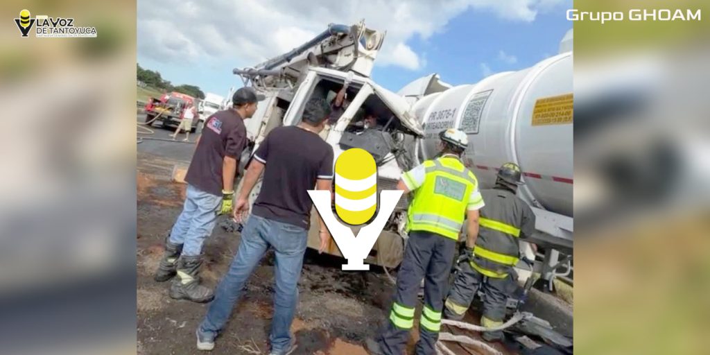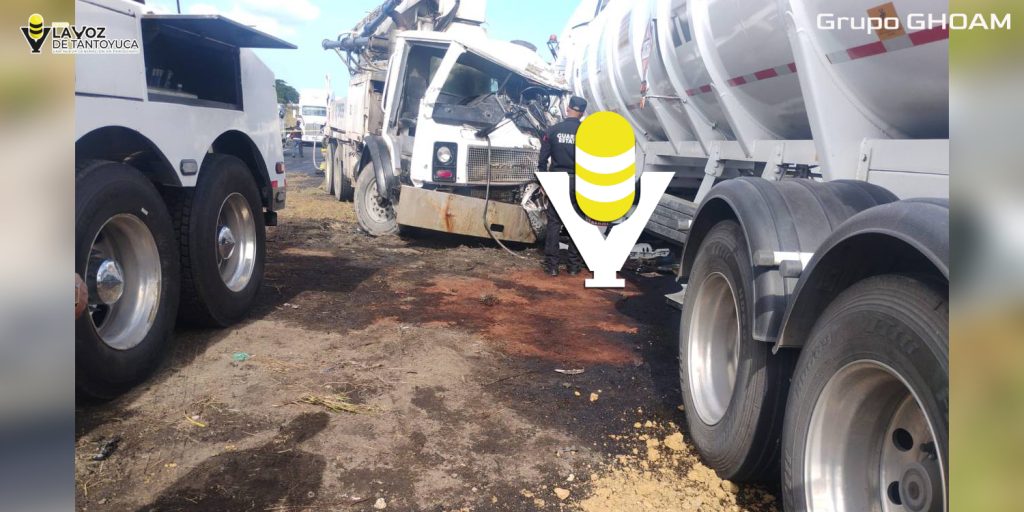 Prensado entre los fierros retorcidos de la cabina del camión de una empresa de concretos, quedó el conductor después de colisionar de frente contra una pipa doble remolque que transportaba combustible para avión.