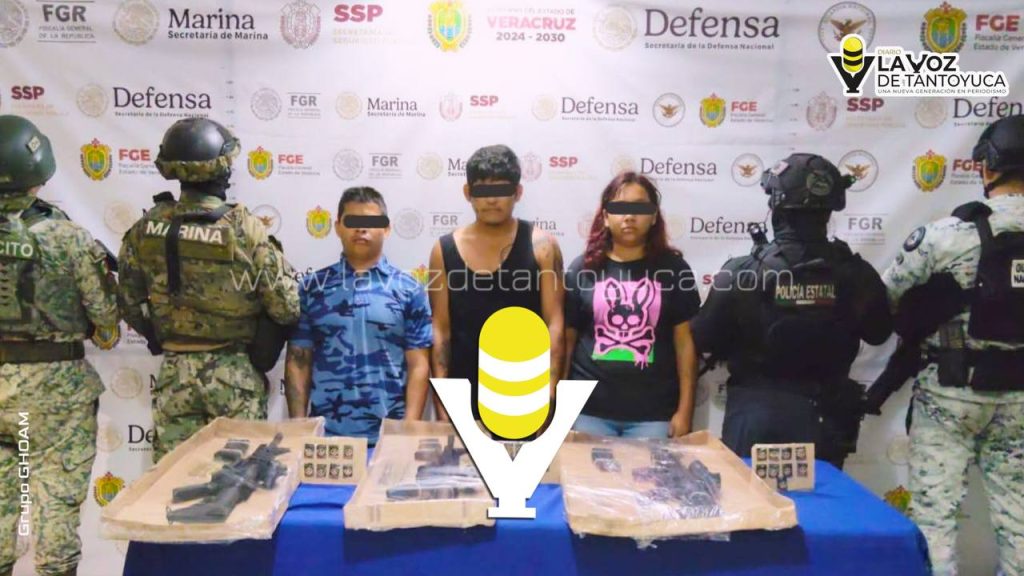 Durante el cateo, se aseguraron armas y drogas. Los detenidos, identificados como Daniela Guadalupe, Pedro José “N” y Daniel Emilio “N”, fueron ingresados al CeReSo Duport Ostión en espera de su sentencia.
