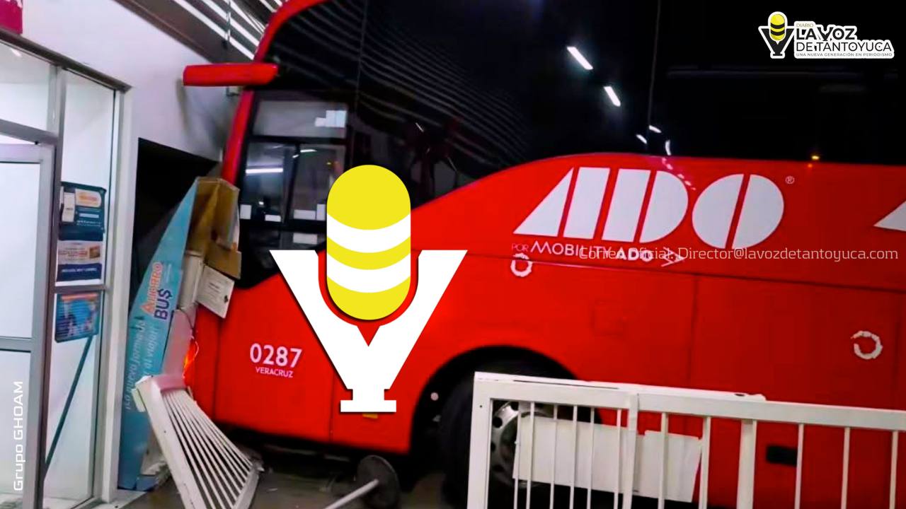 Autobús ADO se impacta contra terminal en Cosamalopan
