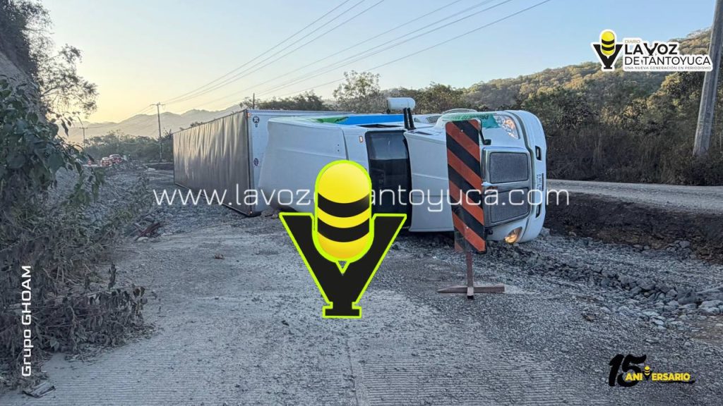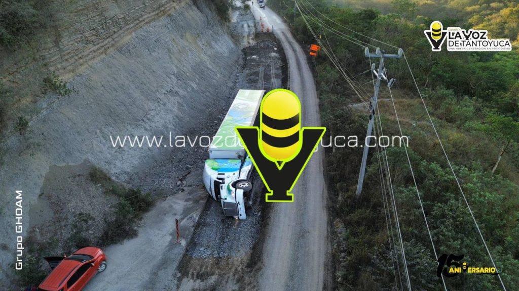 La mañana de este lunes se registró la volcadura de un tráiler en el Libramiento Tres Huastecas, a la altura de la entrada de la localidad de Xiloco, luego de que la pesada unidad cayera en una excavación provocada por los trabajos de ampliación de la carretera.