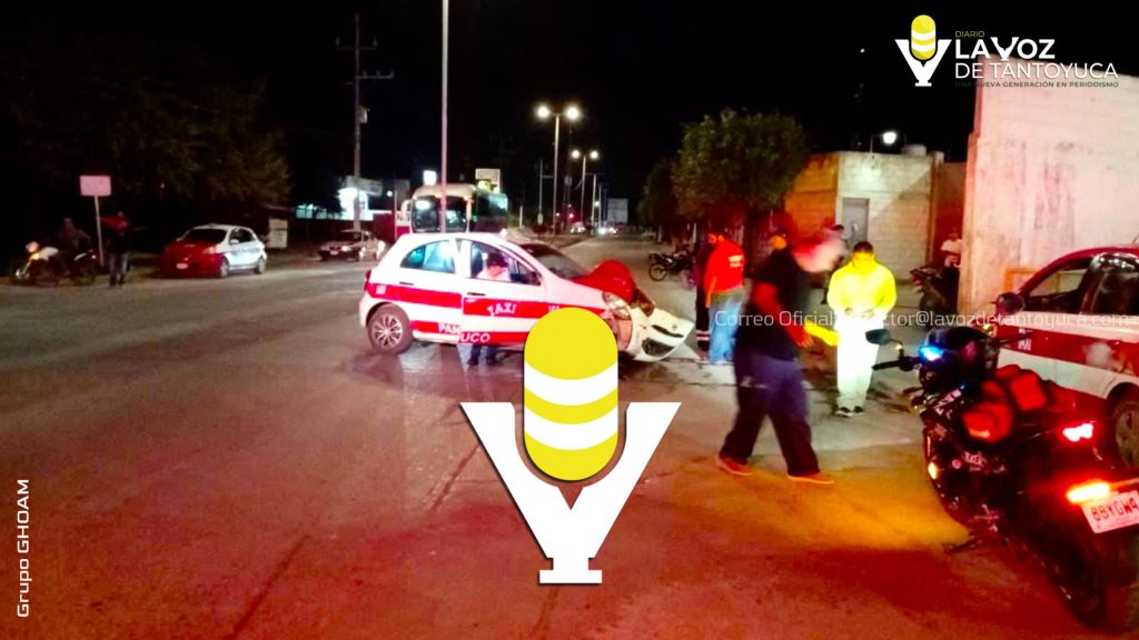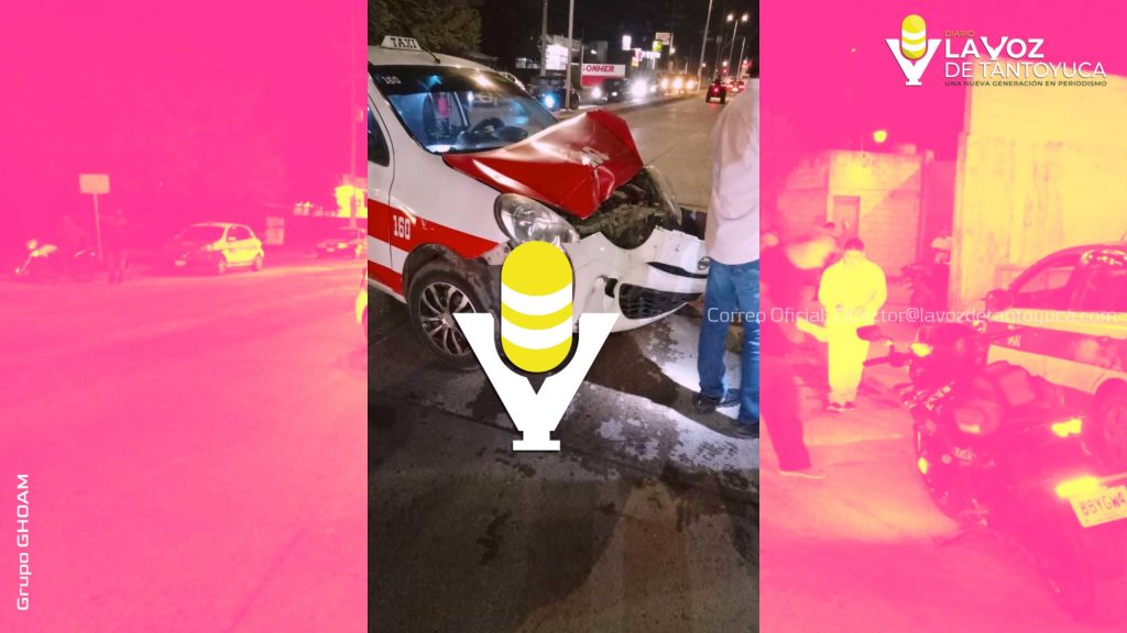 Choque entre taxi y una motocicleta deja cuantiosos daños materiales