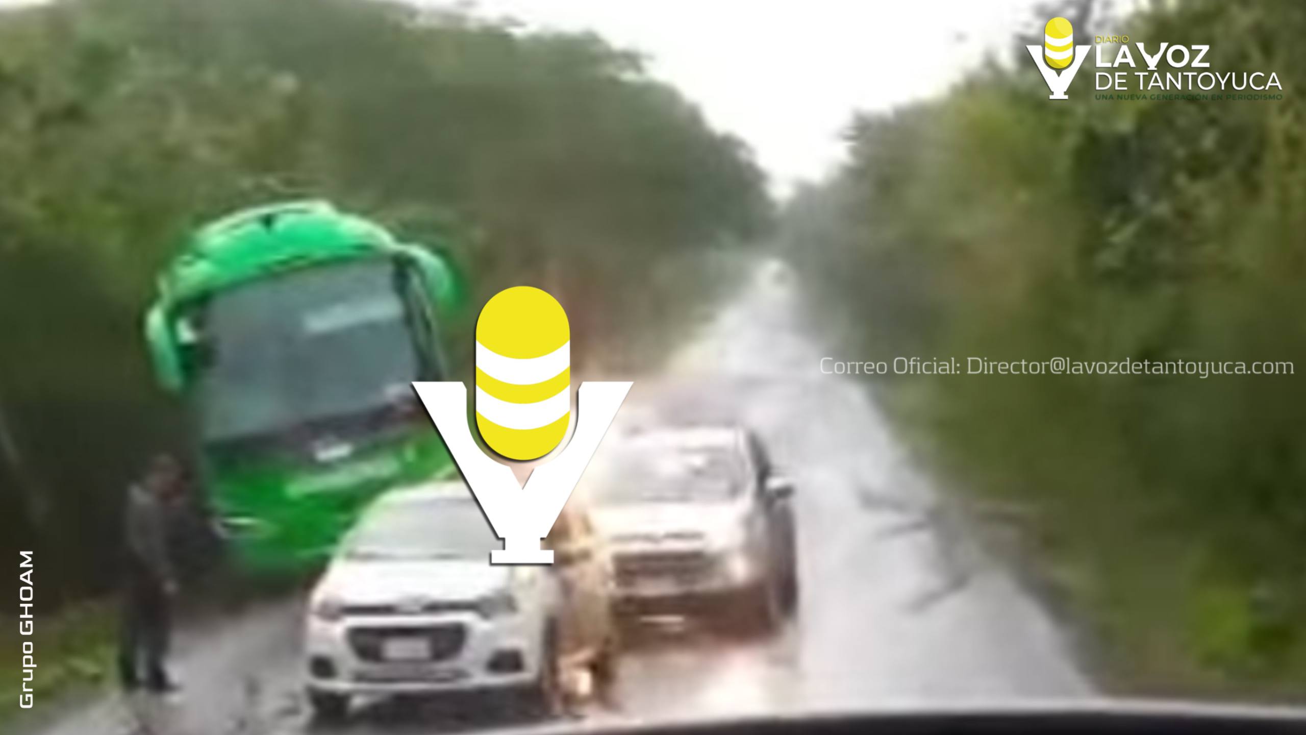 Se informó que no hubo registro de personas lesionadas, solo el susto debido a que la unidad terminó ladeada tras el incidente.