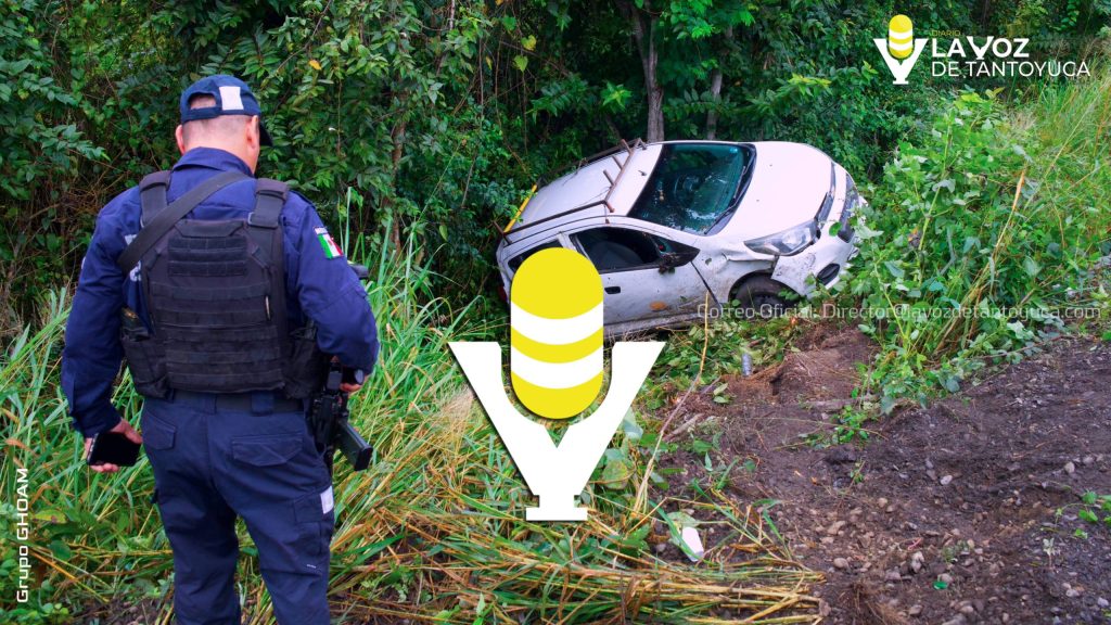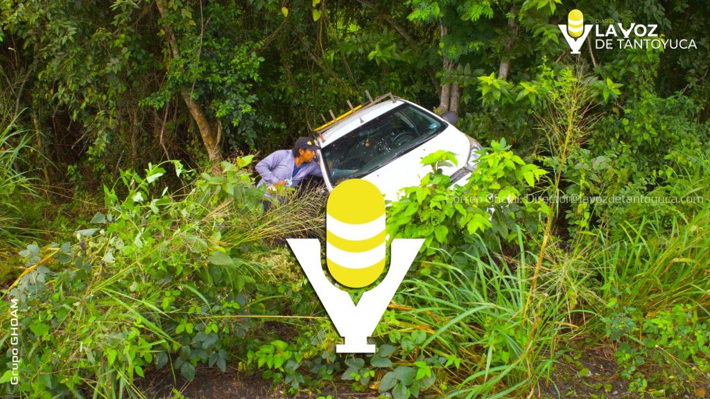 Un aparatoso accidente se registró la mañana de hoy en la carretera federal Alazán – Canoas, tramo Tantoyuca – San Sebastián, cuando un vehículo Chevrolet, Beat, de color blanco, volcó y cayó a un pequeño barranco a la altura de la entrada a la localidad de La Esperanza, Galera.