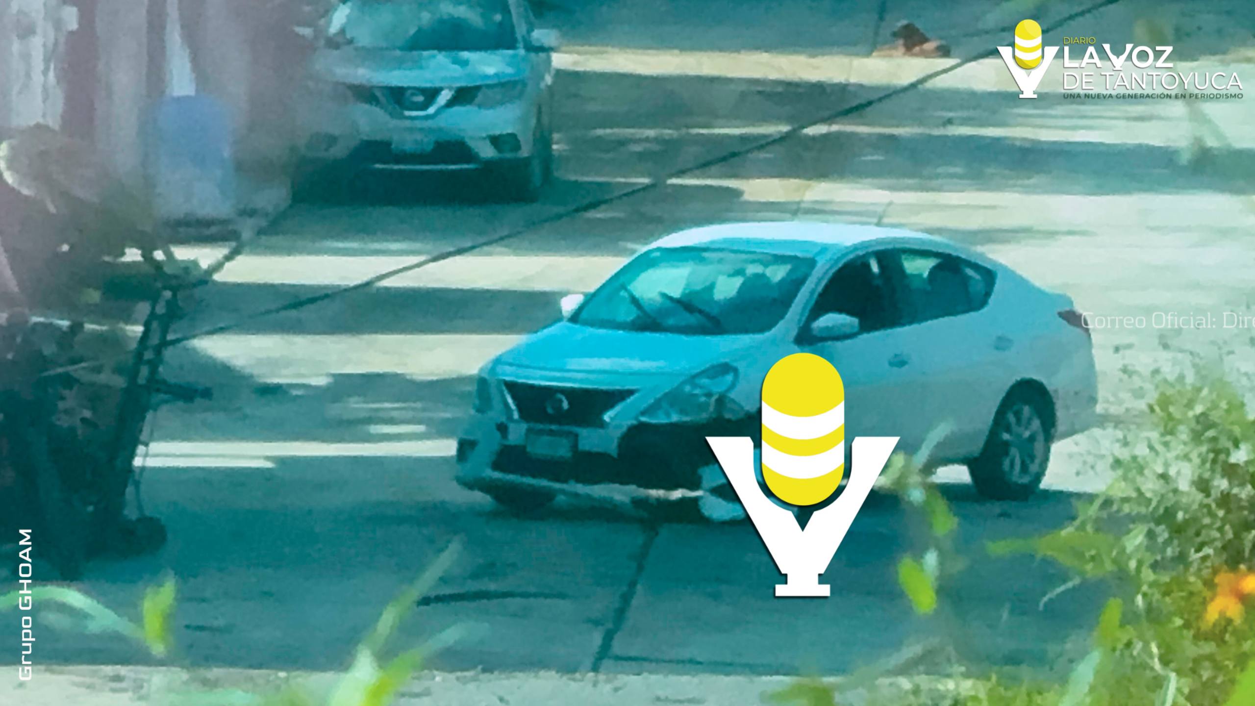El vehículo, un Nissan, Versa de color blanco, presentó daños materiales considerables en la parte frontal.