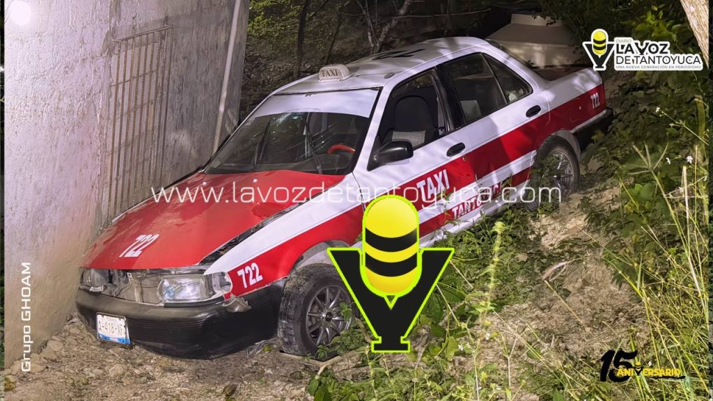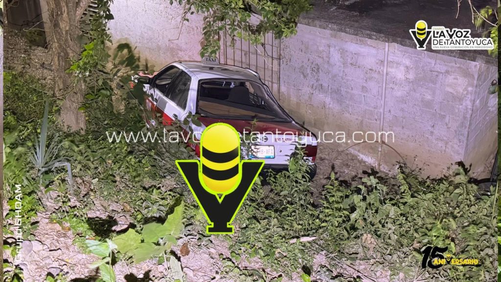 Un vehículo de alquiler marcado con el número económico 722 terminó cayendo a un barranco y causando daños a una vivienda en la colonia Gutiérrez Barrios.