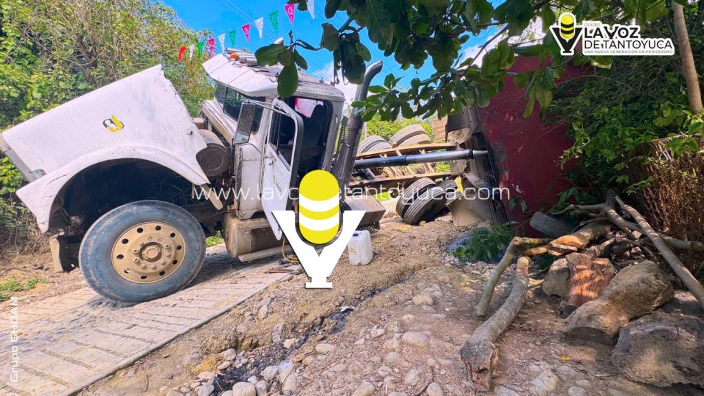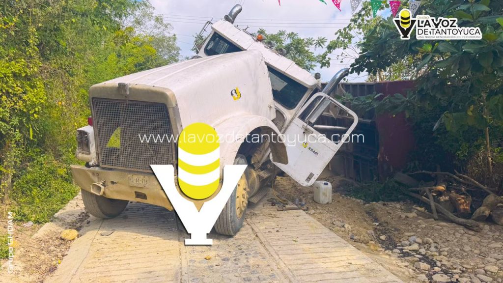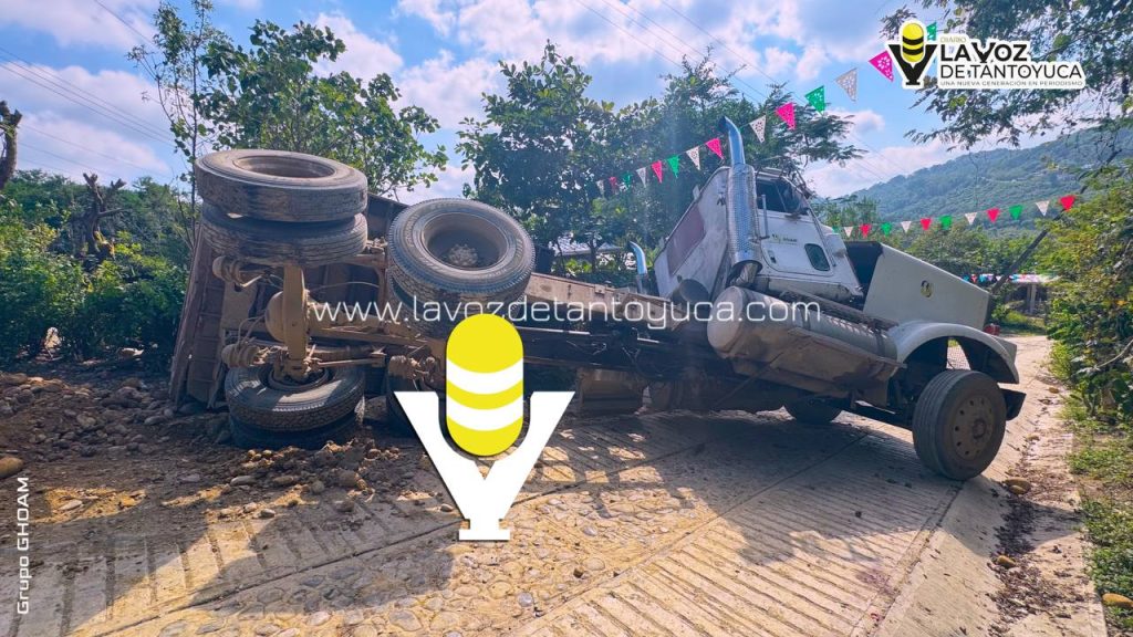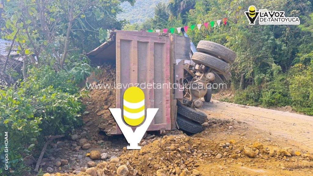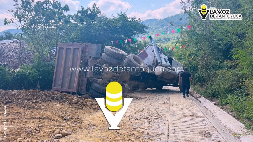 De acuerdo con testigos, el conductor del camión, que pertenece a una empresa particular que trabaja para el ayuntamiento de Tantoyuca, estaba descargando grava cuando el peso del material provocó que el vehículo se inclinara hacia su costado izquierdo y se volcara.