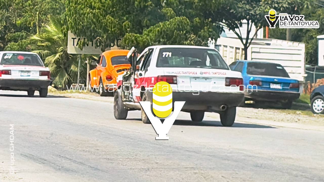 Un vehículo de alquiler Nissan, Tsuru, marcado con el número económico 771, resultó con daños materiales luego de ser impactado por una camioneta que se dio a la fuga.