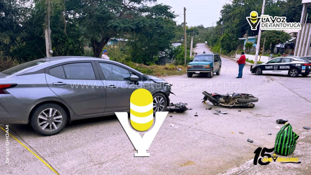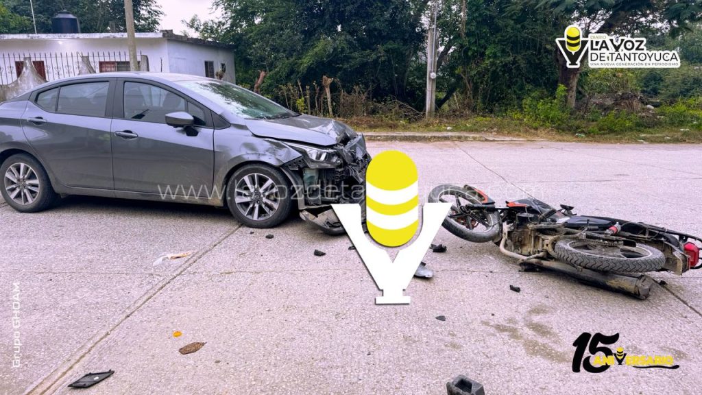 Motociclista provoca aparatoso choque y huye, en Tantoyuca