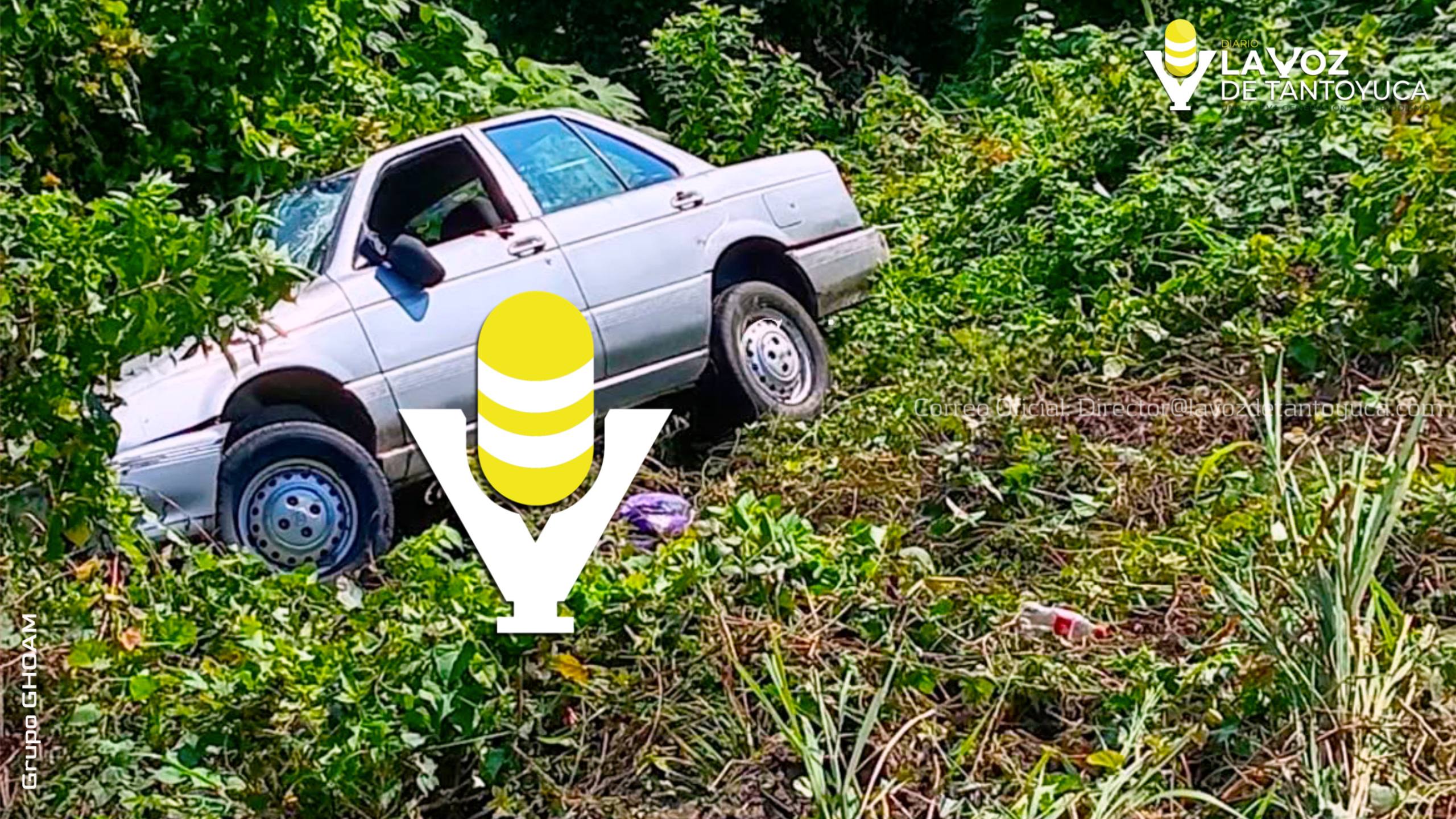 Un vehículo Nissan, Tsuru, de color blanco, se salió de la carretera estatal Chicontepec – Xilico y se fue al barranco en una conocida curva cerca del poblado de Terrero, Chicontepec.