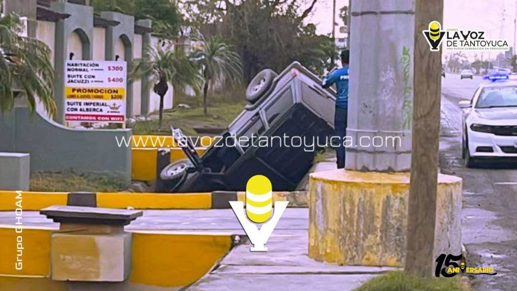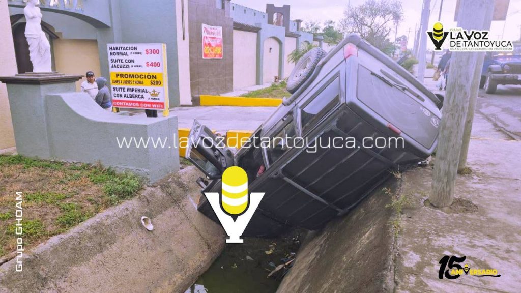 Una jóven que conducía una Grand Cherokee Sport Jeep, se volcó esta mañana en la entrada del Motel Condesa en la Avenida Lauro Villar, cuando una pesera de la ruta KLH, la impactó por atrás y la mando hasta el dren.