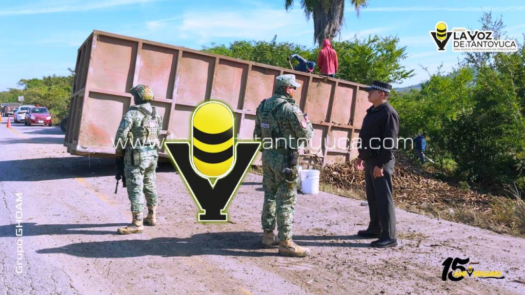 Góndola se desprende y provoca volcadura de camión, en Tempoal