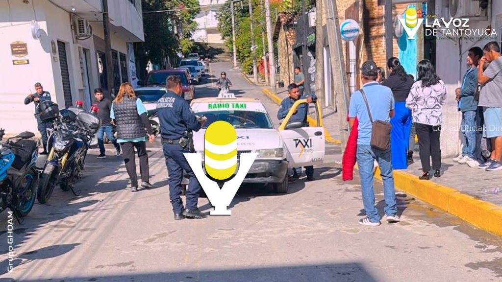 De acuerdo con versiones recabadas en el lugar, el taxi impactó el costado derecho del automóvil particular, provocando que este último se proyectara contra la pared de un establecimiento comercial.