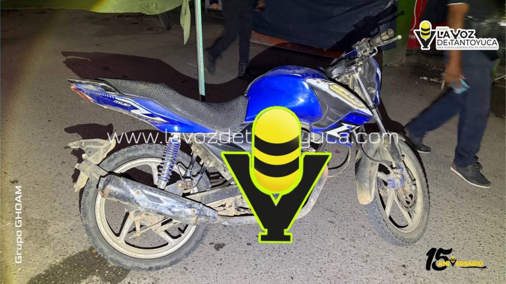 La motocicleta que conducía, de la marca Italika, de azul con blanco, fue asegurada y enviada al corralón de Grúas Monzalvo por agentes de Tránsito y Vialidad.