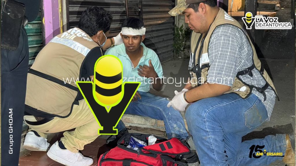 Tras el fuerte impacto, el joven sufrió una lesión en la cabeza y fue auxiliado por elementos de Protección Civil Municipal.