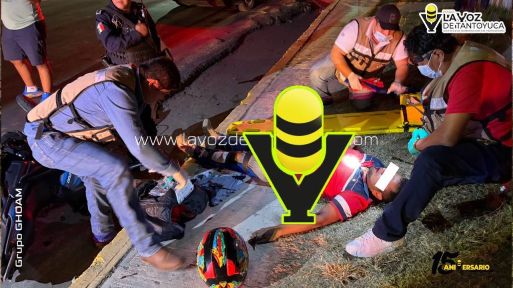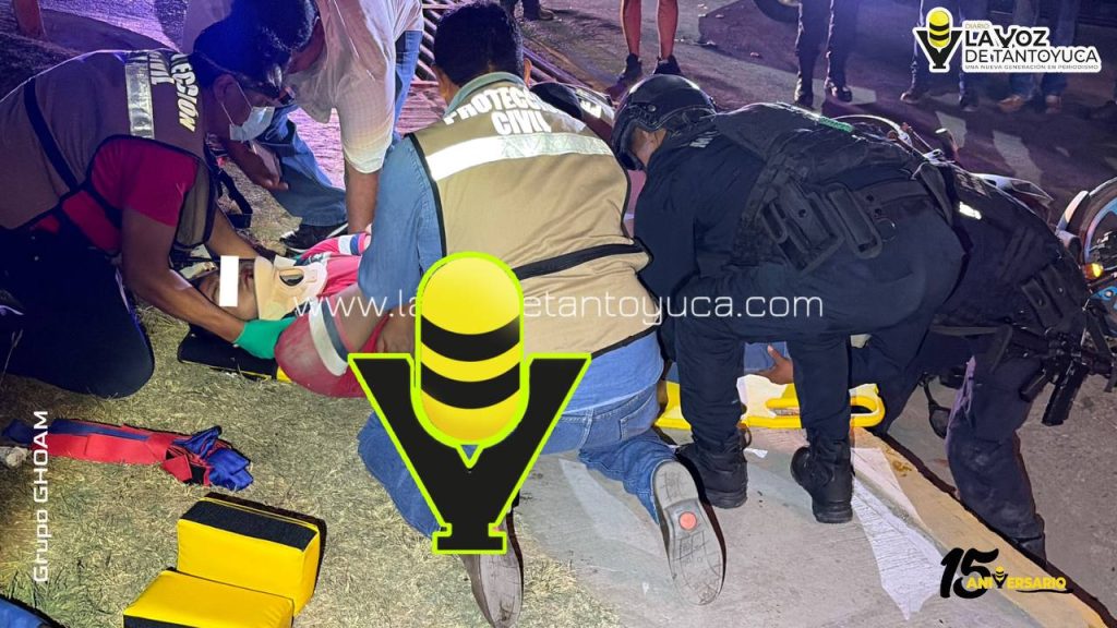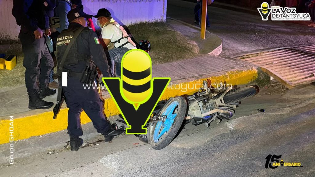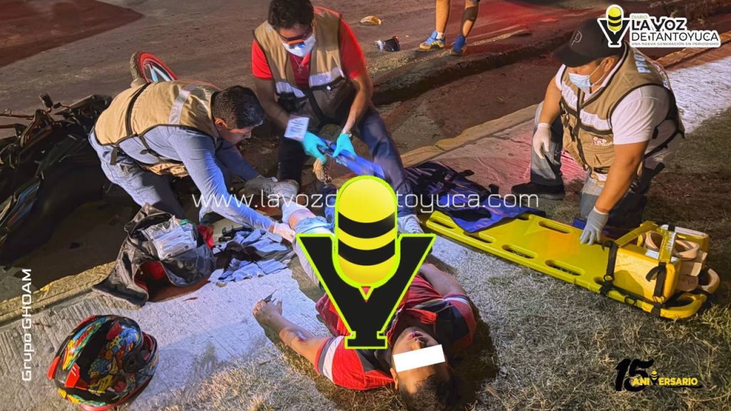 El joven motociclista sufrió una posible fractura en una de sus piernas, mientras que su acompañante resultó con algunas lesiones.