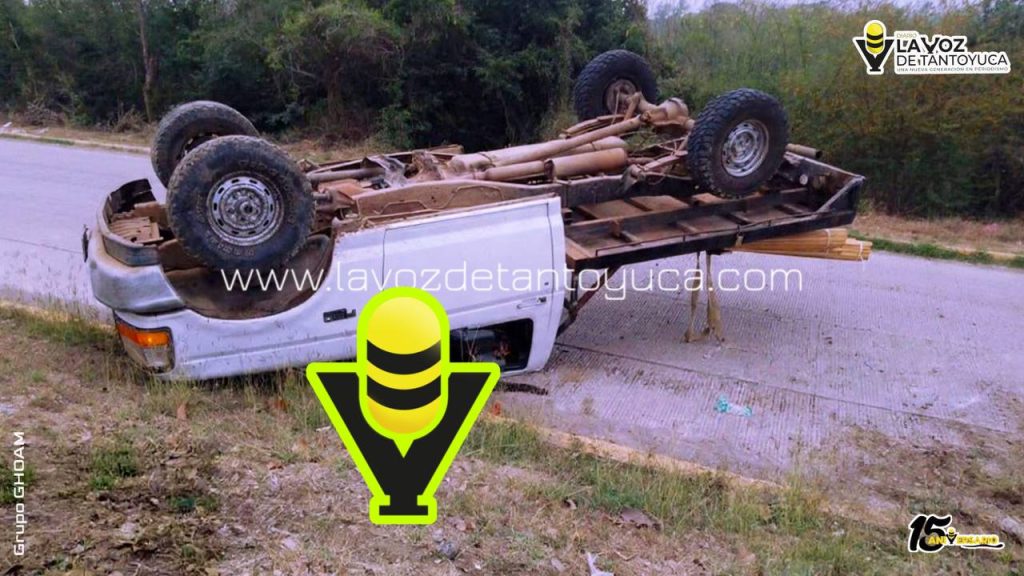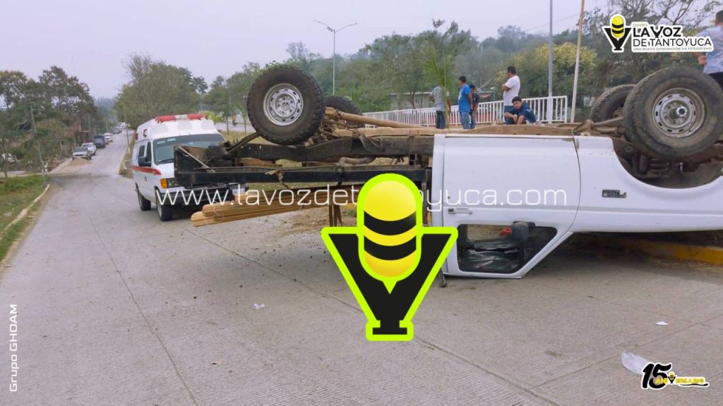 Vuelca camioneta cargada de madera en Tempoal; conductor resultó lesionado