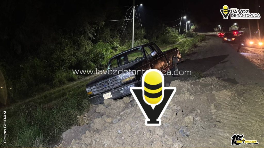 Una camioneta fue localizada fuera de la cinta asfáltica luego de que su conductor perdiera el control sobre la carretera federal Tantoyuca – Tempoal, a la altura del fraccionamiento Los Arroyos.