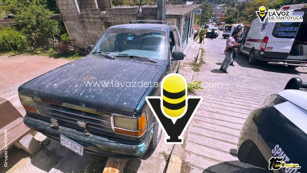 Los hechos ocurrieron sobre la calle 16 de Septiembre, donde una camioneta perdió el control en una pendiente y terminó impactándose contra una mufa.
