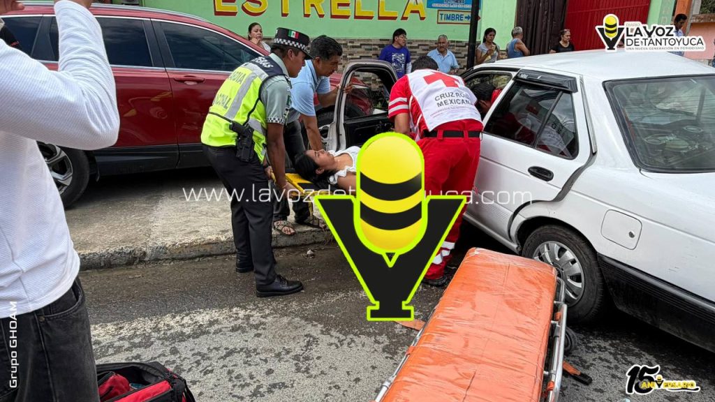 Paramédicos de la Cruz Roja Mexicana acudieron al sitio y brindaron valoración médica a una mujer identificada como María Paula Hernández Salvador, de 29 años, así como a un adulto mayor, ambos pasajeros al momento del percance.