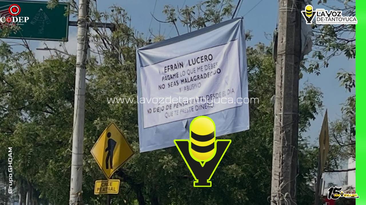 La colocación de una manta en la vía pública generó atención entre ciudadanos, al exhibir a un presunto deudor.