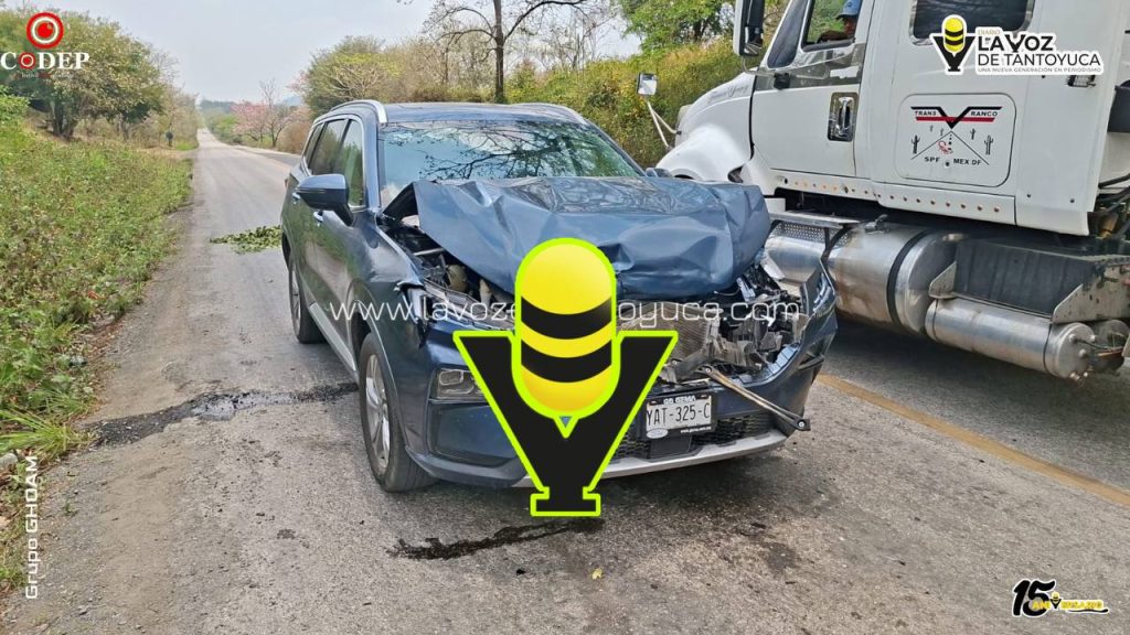 Un choque por alcance dejó daños materiales por varios miles de pesos sobre la carretera federal Alazán – Canoas, en el tramo Tantoyuca – San Sebastián, a la altura de la localidad de Mezquite.