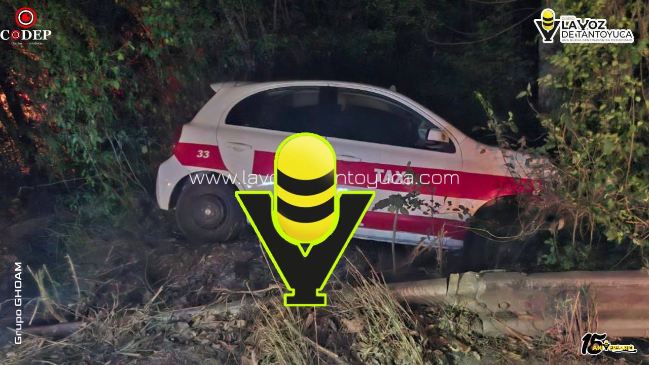 Un taxi proveniente del sitio Platón Sánchez se vio involucrado en un accidente la noche del sábado sobre la carretera México – Tampico, a la altura del municipio de Chalma.