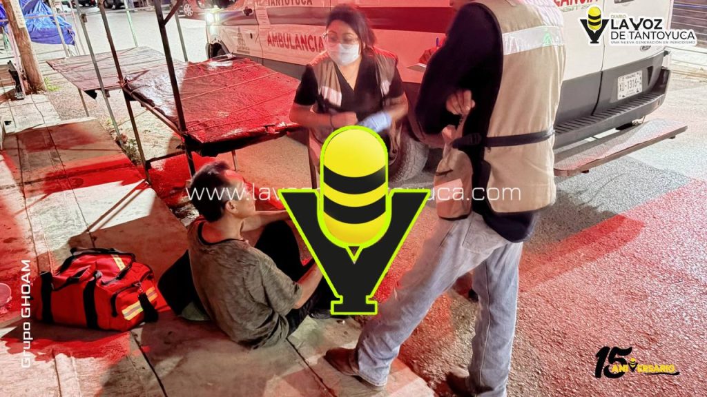 Hombre resulta lesionado tras caer en la Zona Centro, en Tantoyuca