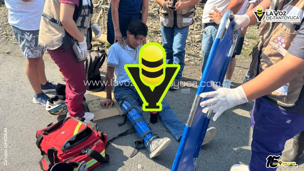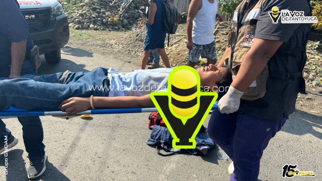 Tras el fuerte impacto, el joven cayó sobre el asfalto y resultó con diversas lesiones, por lo que fue auxiliado por elementos de Protección Civil Municipal, quienes posteriormente lo trasladaron a un nosocomio local para recibir atención médica.