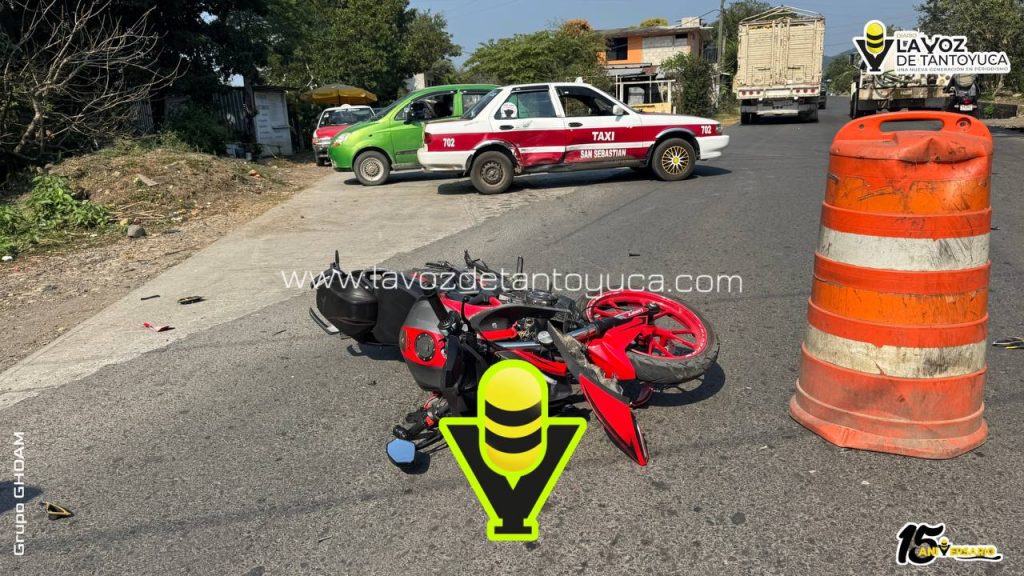 De acuerdo con testigos, el conductor del taxi, quien manejaba un vehículo Nissan, Tsuru, marcado con el número económico 702, con jurisdicción en esa localidad, presuntamente realizó un cierre de circulación, lo que provocó que el motociclista se impactara contra el costado derecho de la unidad.