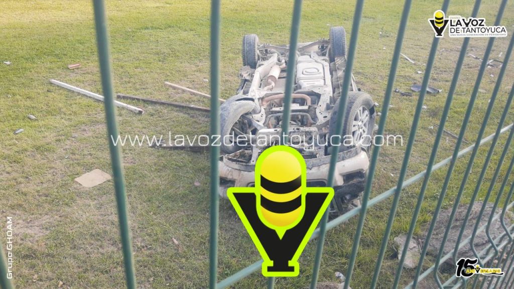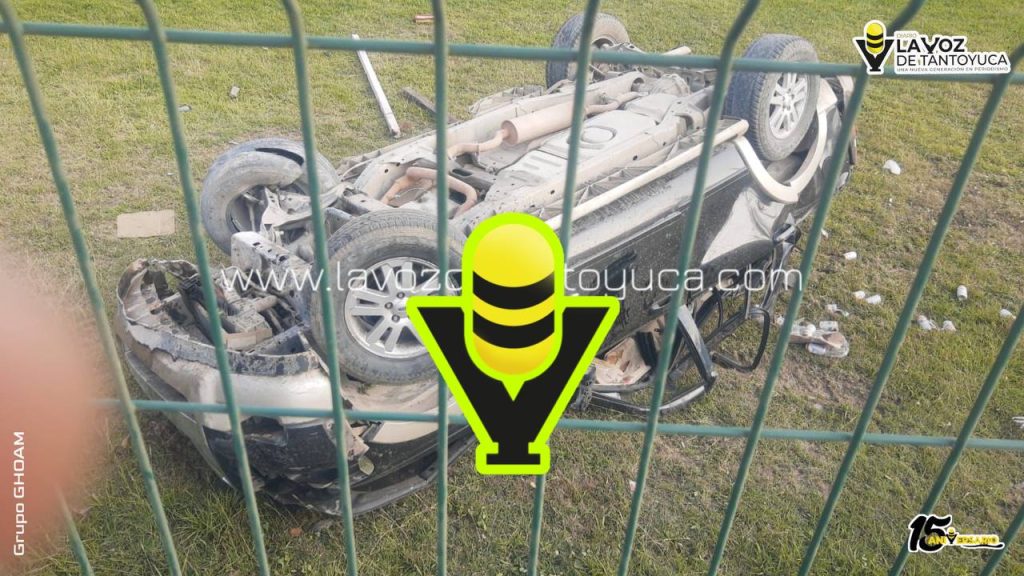 >>Los tripulantes de milagro lograron salir de la unidad, la cual quedó con las llantas arriba en un área verde.