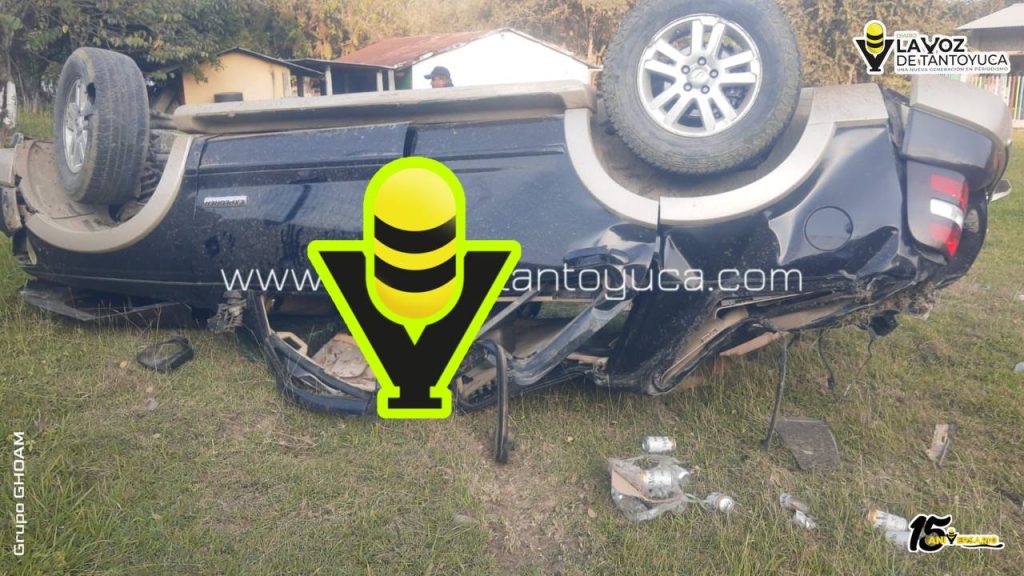 Dos sujetos se salvaron de morir aplastados luego de que la camioneta en la que viajaban volcara la tarde de este viernes sobre la carretera México – Tampico.