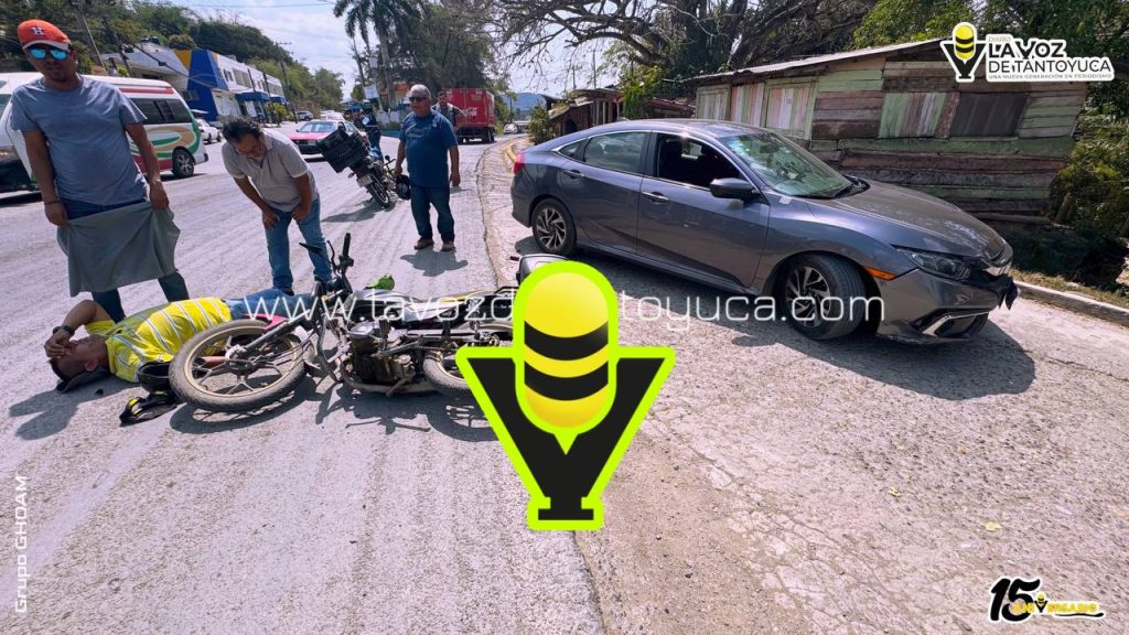 Motociclista resulta lesionado tras choque con auto en Tantoyuca