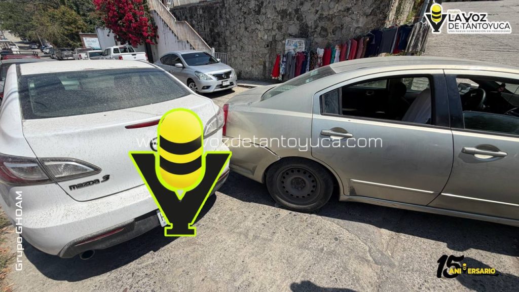 Auto se va en reversa y provoca choque en céntrica arteria, en Tantoyuca