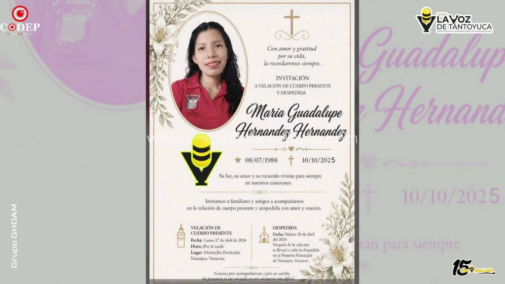 MENSAJE DE LA DIRECCIÓN: 1.- Esta nota periodística es responsabilidad directa de quien la firma, por lo cual, su publicación no depende única ni exclusivamente del punto de vista de quien dirige este medio de comunicación. 2.- Las fotografías e información publicadas en este medio de comunicación, son exclusivas de GRUPO Informativo La Voz De Tantoyuca, bajo la responsabilidad directa de quien la firma. 3.- Para reproducir este artículo, es necesario que incluyas al principio o debajo de la nota el siguiente mensaje "Contenido tomado de www.lavozdetantoyuca.com." 4.- Para cualquier duda, comentario y/o replica puede comunicarse por los siguientes medios: a): Via email: ([email protected]) b): Via telefónica 2288513983 c): Via fomulario de Contacto 5.- Para promocionarse con nosotros por favor contáctenos. Todos los Derechos Reservados © 2026