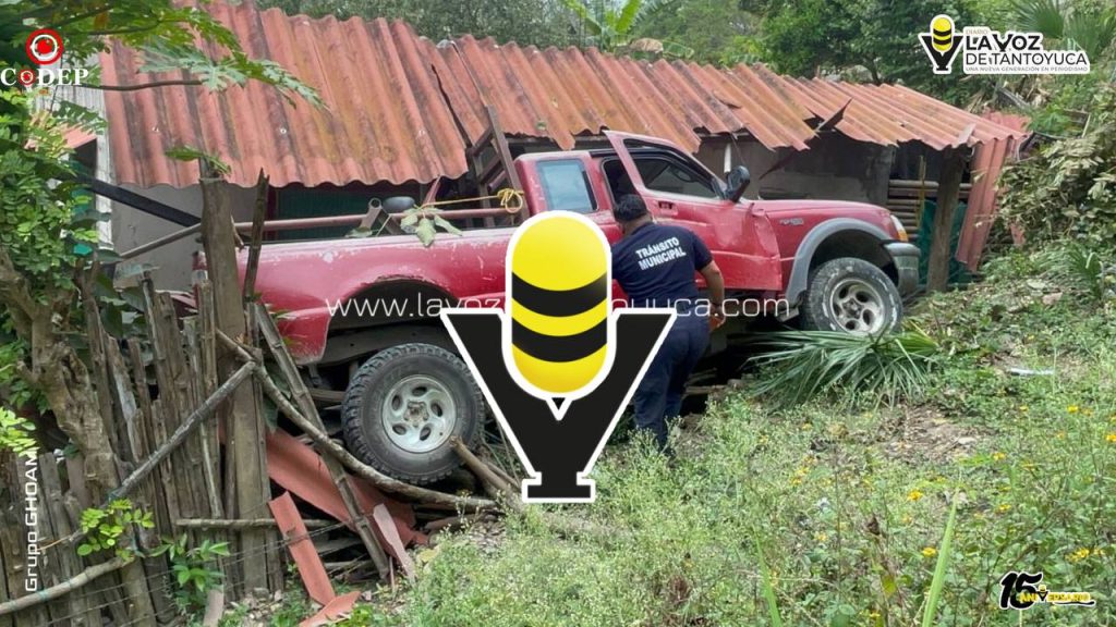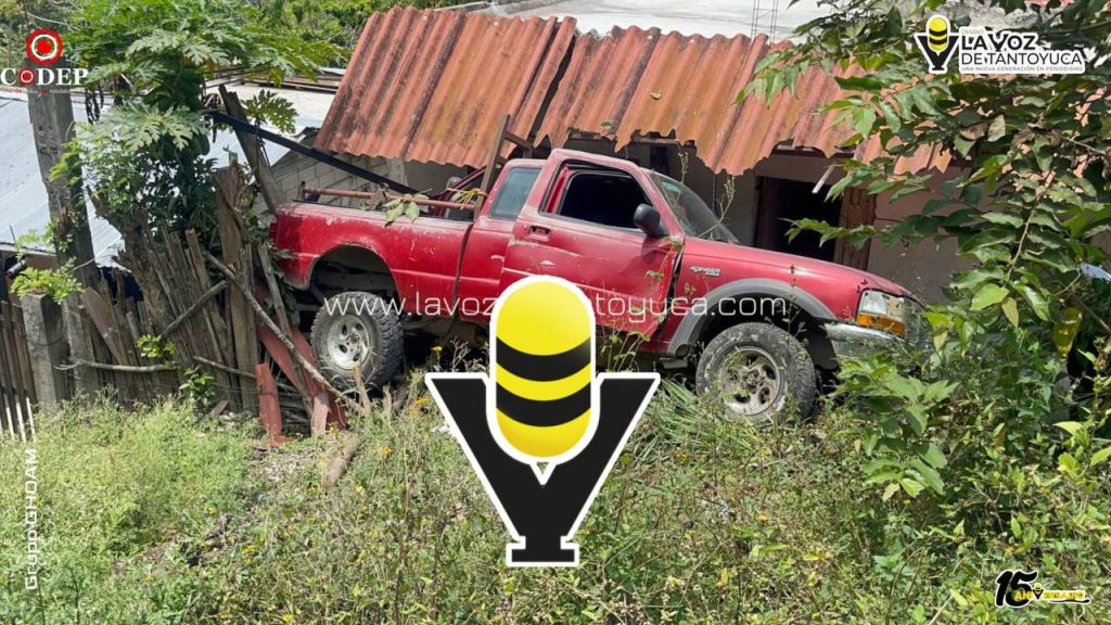 Camioneta sin control termina en un barranco y se impacta contra una vivienda, en Tantoyuca