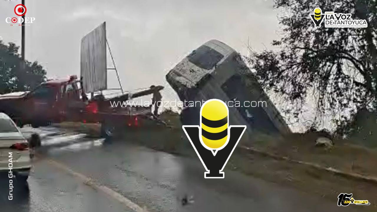 De acuerdo con los primeros reportes, la unidad —procedente del estado de Tlaxcala y con destino a San Luis Potosí— transportaba a un conjunto artístico que viajaba con 22 pasajeros.