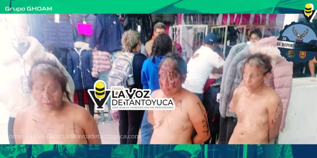 Tres mujeres presuntas ladronas que fueron sorprendidas queriéndose robar unas pacas de ropa fueron detenidas, rapadas y desnudadas en pleno tianguis de San Martín Texmelucan.