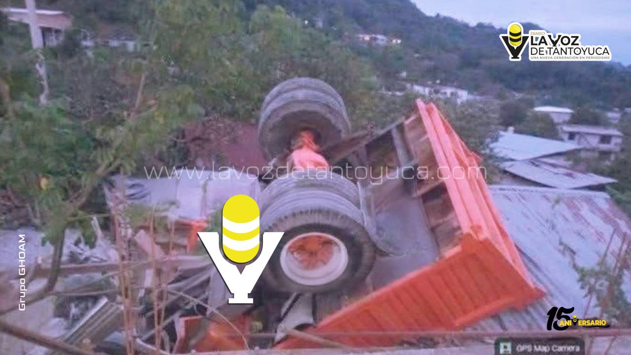 Un camión de volteo que aparentemente se quedó sin frenos causó un accidente en la comunidad de Huitztipan, en Ilamatlán, Veracruz, al incrustarse en una vivienda.
