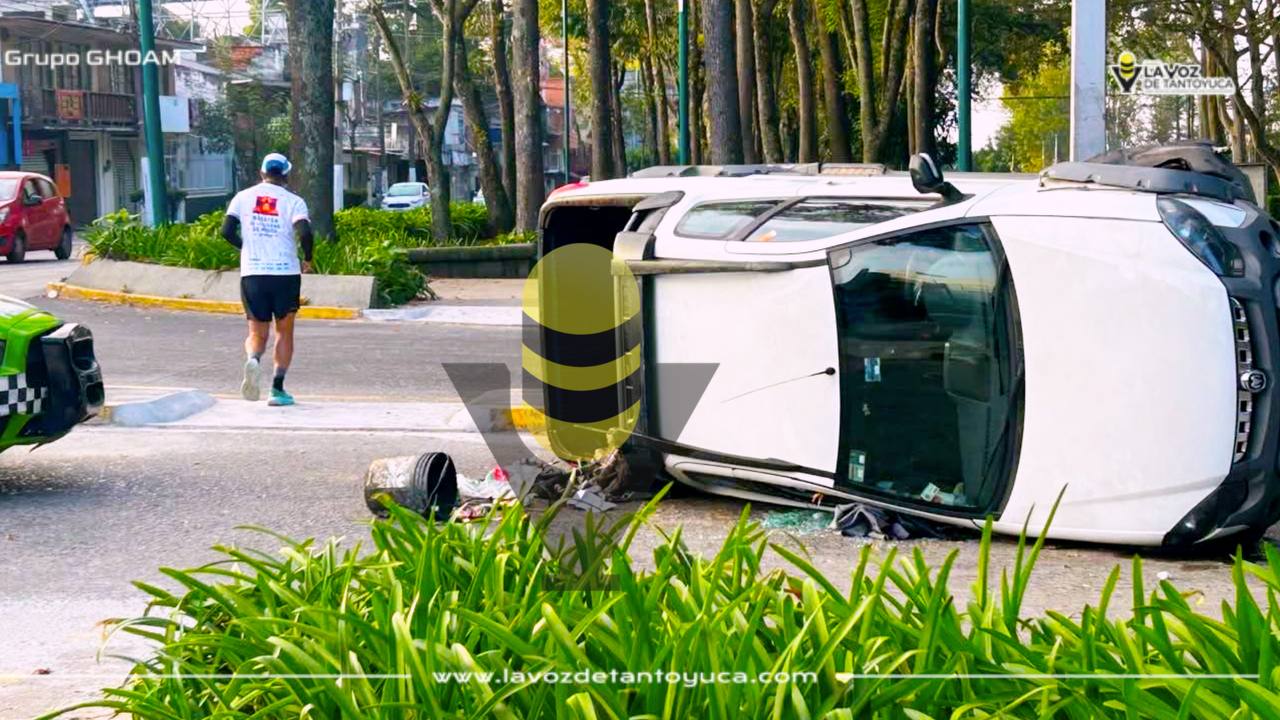 La mañana de este domingo, una camioneta terminó volcada sobre la avenida Xalapa, justo en el retorno que conecta con la avenida Acueducto.