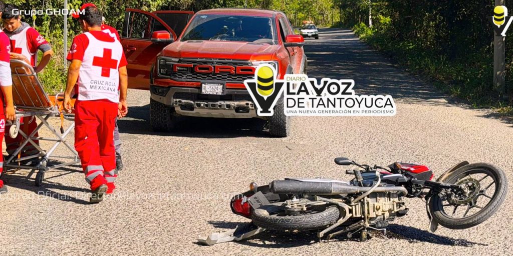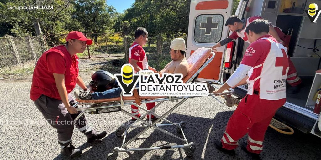 Paramédicos de la Cruz Roja Mexicana brindaron atención al motociclista identificado como Juan N. H. B., vecino de la comunidad de Chililico, quien sufrió golpes en el cráneo y diversas partes del cuerpo, por lo que fue trasladado al Hospital Regional de Huejutla.