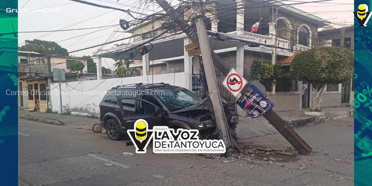 Una camioneta que era conducida a velocidad vertiginosa, se estrelló y derribó dos postes, uno de ellos que sostenía cables de alta tensión, dejando sin servicio de energía eléctrica a un vasto sector de la colonia Del Pueblo en Tampico.