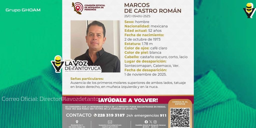 Organizaciones civiles y colegios de profesionales de la salud en la región han exigido la pronta localización de Román Marcos de Castro, cuya labor médica era fundamental en comunidades marginadas del sur de Veracruz.
