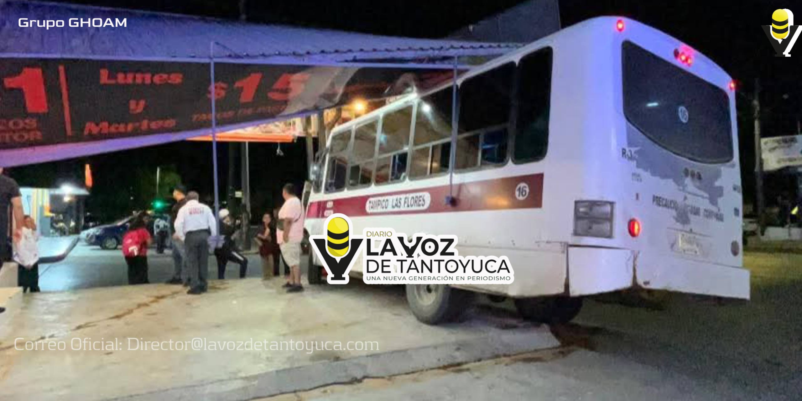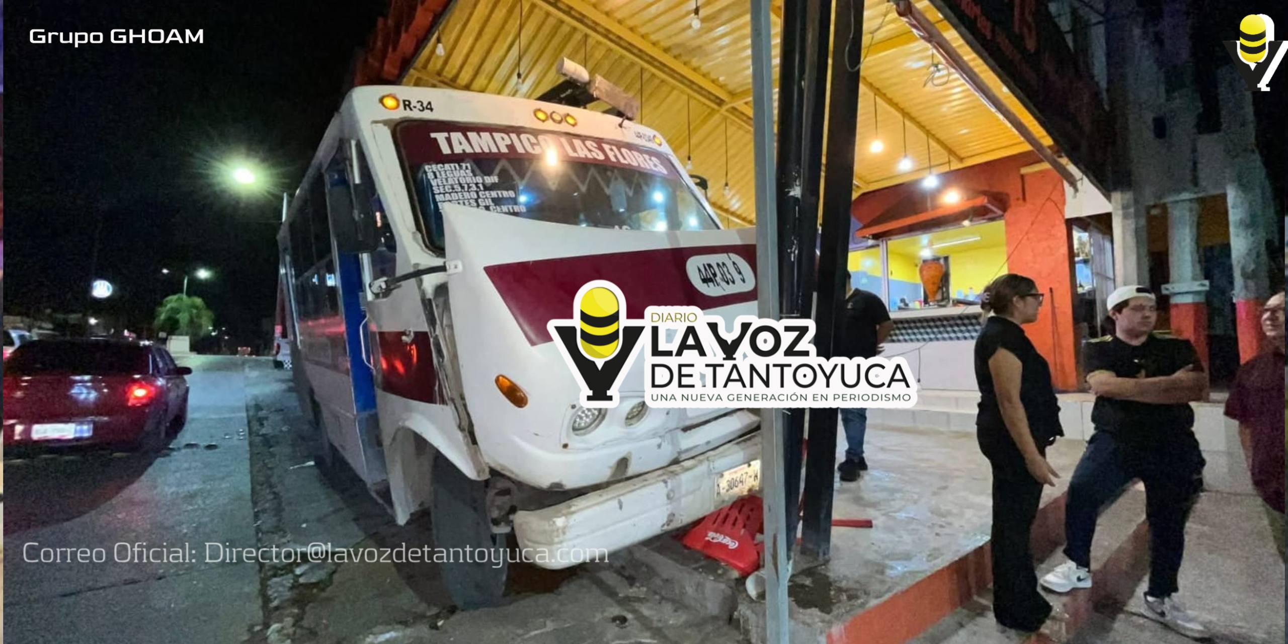 Un microbús de la ruta Tampico – Las Flores que circulaba de norte a sur tuvo el desperfecto y terminó impactado la base de un techado ubicado al exterior del negocio donde no había comensales en ese momento, en la Avenida Álvaro Obregón.